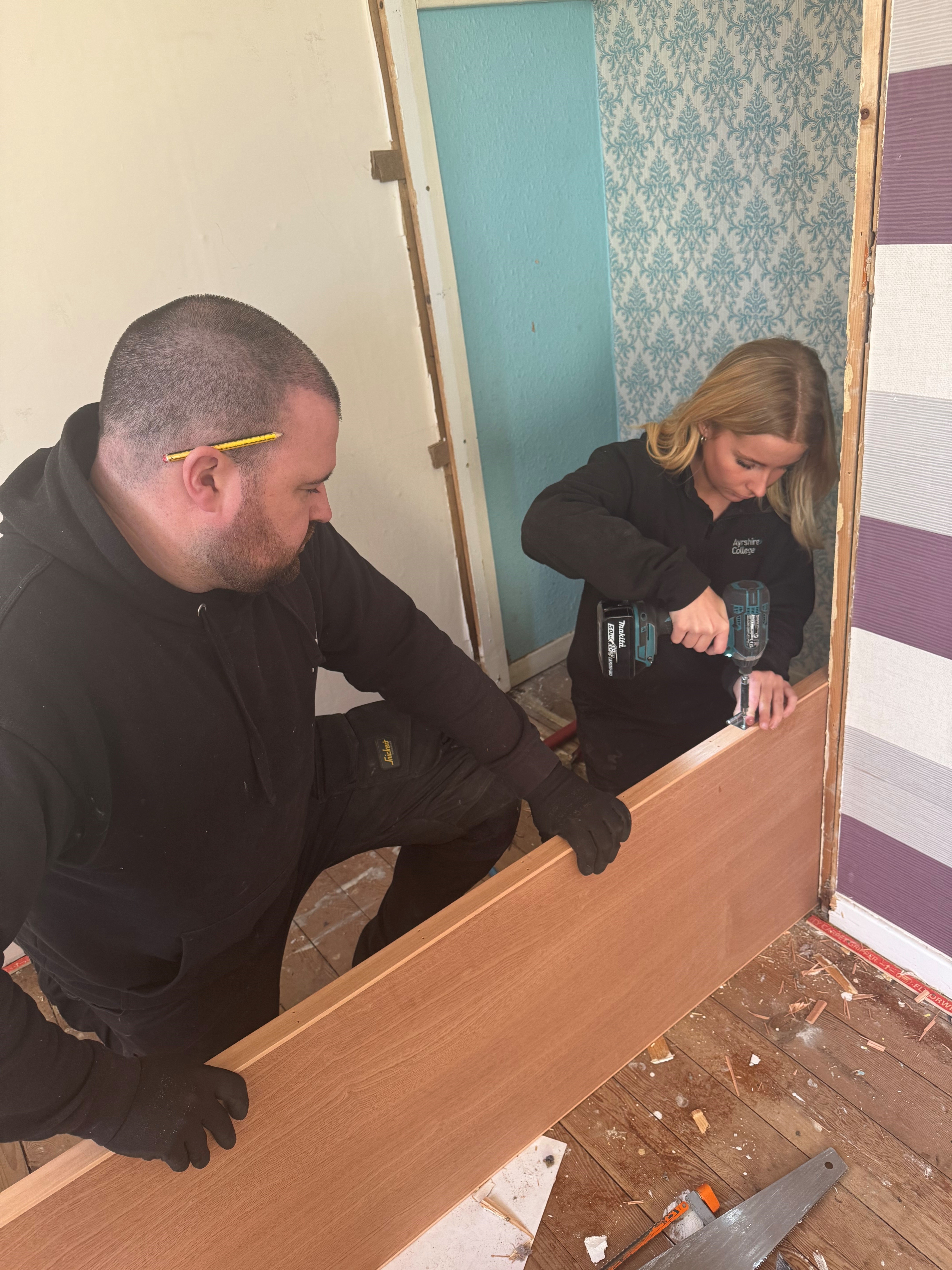 The programme was established through collaboration between Craig Pettigrew, Carpentry and Joinery lecturer at Ayrshire College, William Andrew (Service Lead) and AnneMarie Shirley (Operational Team Leader) from South Ayrshire Council. This venture gives the Ayrshire College Carpentry and Joinery students the opportunity to gain practical experience by working alongside experienced joiners at Property Maintenance within South Ayrshire Council.